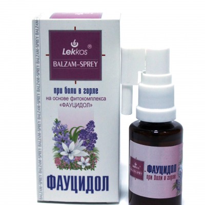 Фауцидол – це унікальний натуральний препарат, на основі комплексу Фауцидол, що дозволяє ефективно доглядати носоглотку. Запобігає розвитку запалення та зменшує больові відчуття під час респіраторних захворювань, попереджає розвиток подальших ускладнень. Прополіс потужний природний протизапальний засіб, що сприяє загибелі патогенних мікроорганізмів, вірусів, грибків. Гідролат листя і плодів ожини, малини та чорної смородини – багатий на вітаміни (С, група В, Р, провітамін А) та корисні ферменти, що підсилюють захисні сили організму, допомагає боротися з вірусами, надає спрею приємного смаку та аромату. Ефірні олії чайного дерева, лимона, чебрецю, герані, сандалового дерева, мирри – мають антибіотичні та в’яжучі властивості, підвищують опірність організму. Антисептична та регенеруюча дія забезпечується наявністю олій ромашки календули. Компоненти бальзам-спрею сприяють поліпшенню кровопостачання та обміну речовин у запалених тканинах, усуває набряклість. Цей лікувально-профілактичний засіб необхідний кожній сім’ї, особливо в період епідемій грипу та ГРЗ.